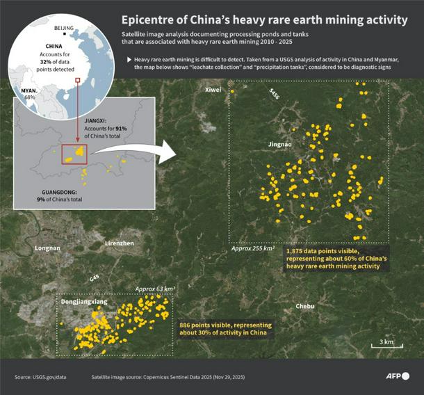 Ganzhou (China) (AFP) - Buried in the reddish soil of southern China lies latent power: one of the largest clusters of crucial rare earths is mined around the clock by a secretive and heavily guarded industry.