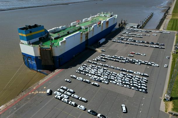 Volkswagen cars at a port in Germany. Last year, Germany's auto exports to China plunged, a study showed