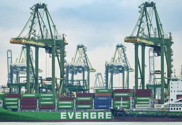 A vessel loaded with containers is docked at Pasir Panjang port terminal in Singapore. Exports from the city-state slid again in August as shipments to its biggest markets -- the US and China -- keep dropping