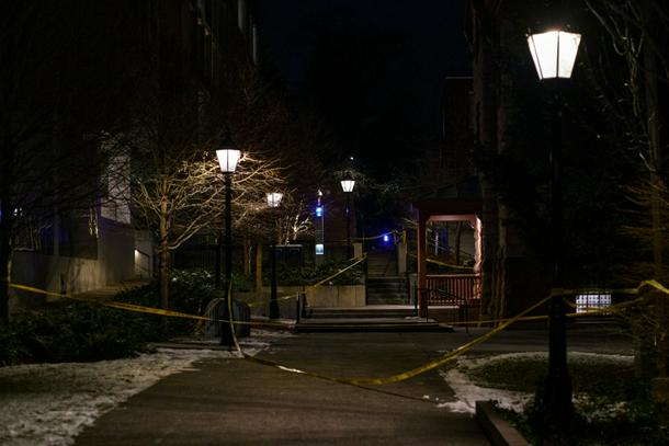 Police crime scene tape is seen near the site of a December 13 shooting at Brown University in Providence, Rhode Island, on December 15, 2025