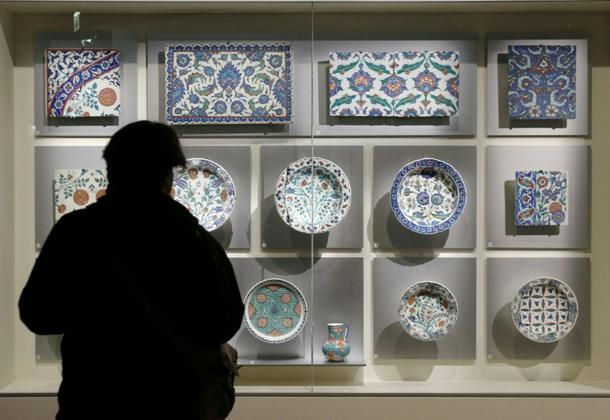 A visitor looks at Ottoman-era Iznik tiles at the Louvre - Turkey says it is trying to retrieve several dozen similar tiles from the Paris-based museum