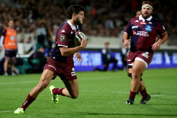 Bordeaux-Begles centre Nicolas Depoortere (L) scored a try and set-up another in the win over Lyon
