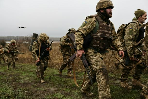 In this handout photograph taken and released by the press service of the 65th Mechanized Brigade of Ukrainian Armed Forces on December 12, 2025, Ukrainian recruits complete basic military training at an undisclosed location in Zaporizhzhia region