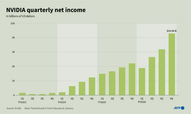 San Francisco (United States) (AFP) - Nvidia on Wednesday reported blockbuster quarterly results that blew past Wall Street expectations, posting record revenue of $68.1 billion as insatiable demand for its artificial intelligence chips showed no sign of cooling.