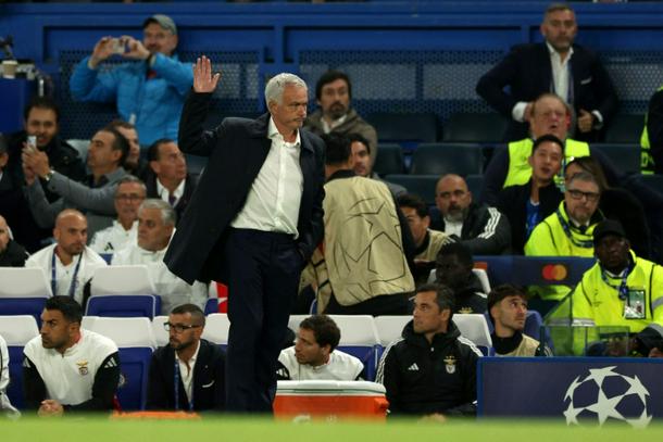 Benfica boss Jose Mourinho acknowledges chants from Chelsea fans