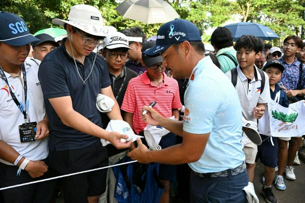 Miguel Tabuena signs autographs for fans after finishing his third round at International Series Philippines. "It was crazy. I haven't played in front of that many people for a long time," he said