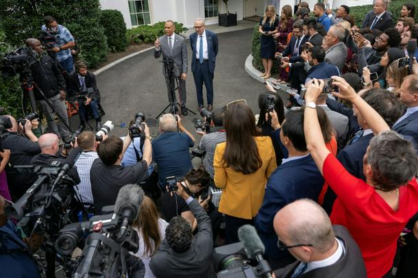 Top House Democrat Hakeem Jeffries and Top Senate Democrat Chuck Schumer met with Republican leaders at the White House after a previous meeting was canceled by Trump