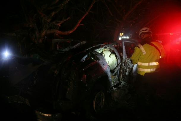 First responders at the site of Israeli strikes in al-Jnah on the outskirts of Beirut's southern suburbs