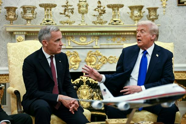US President Donald Trump meets Canadian Prime Minister Mark Carney in the Oval Office in October 2025