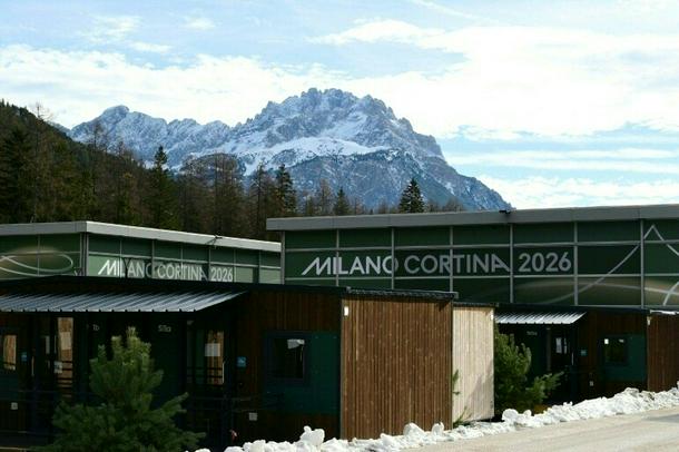 A temporary complex of mobile homes has been built on the edge of a forest in Cortina d'Ampezzo to house athletes at the Milan-Cortina Winter Olympics in February 2026