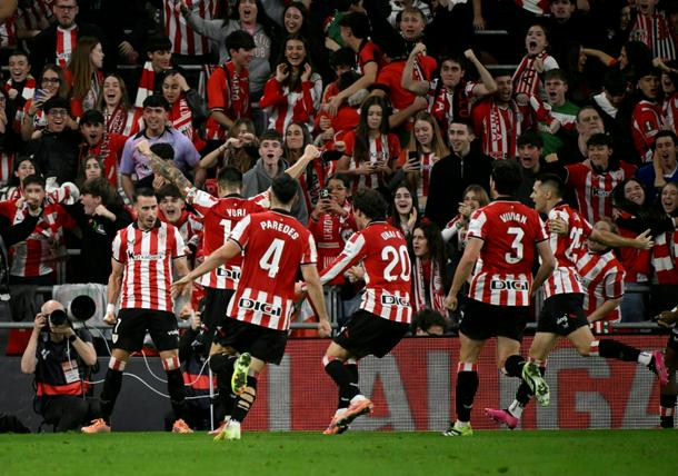 Athletic Bilbao forward Alex Berenguer celebrates scoring his team's dramatic late goal in the win over Atletico Madrid