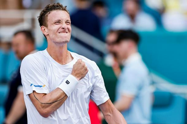 Czech Jiri Lehecka celebrates after beating France's Arthur Fils to reach the ATP Miami Open final