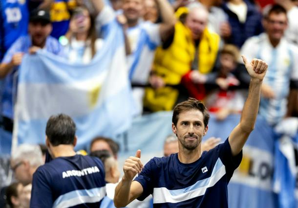 Argentina's Andres Molteni (R) helps his team book their ticket to the Davis Cup finals