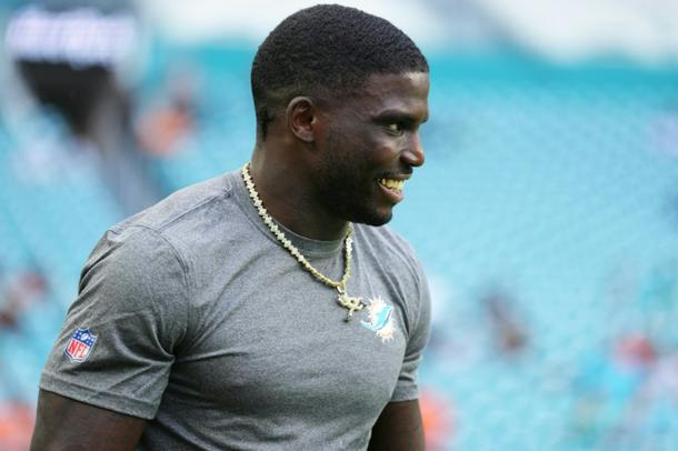 Miami Dolphins wide receiver Tyreek Hill warms up before an NFL pre-season game
