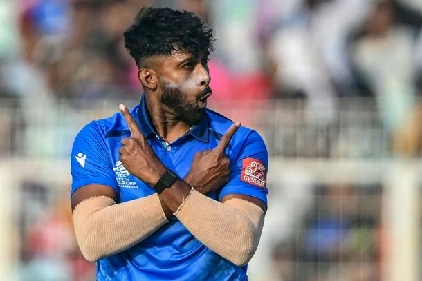 Leg-spinner Crishan Kalugamage works in a pizzeria in Tuscany and topped up his three wickets against Nepal with the dismissals of England’s Tom Banton and Sam Curran.