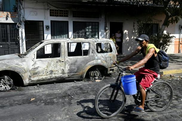 “It feels like we’re in a war zone,” Javier Perez, a 41-year-old engineer, told AFP on Tuesday in the parking lot of a grocery store replete with burnt-out cars in the Jalisco tourist resort of Puerto Vallarta.