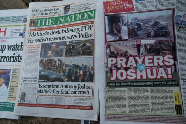 Joshua was involved in the smash, which happened on Monday morning on a main road linking Lagos and Ibadan in the southwest of the country.