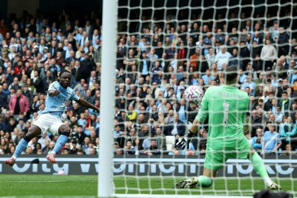 Manchester City's Jeremy Doku (L) was in fine form against Burnley