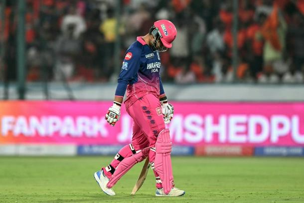 Opening at the other end, Hussain followed up by removing Yashasvi Jaiswal with his fourth ball and, in his next over, raised the roof at his home stadium in Hyderabad by having had Riyan Parag caught at slip.