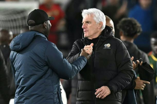 Hugo Broos (R) saw his South Africa side go out of the Cup of Nations against his old team Cameroon