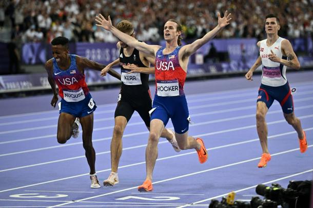 They battled each other on the final lap and American outsider Cole Hocker, who had yet to beat the duo in 14 races, stole through to take the title, Kerr’s fastest ever time only good enough for silver.