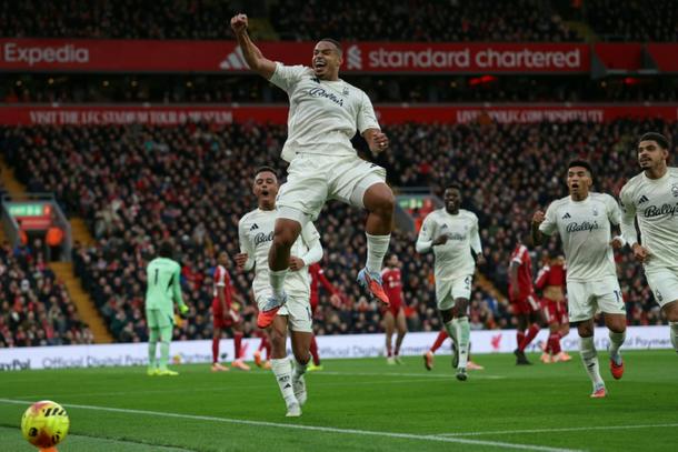 With Liverpool’s defence in disarray, Morgan Gibbs-White scored Forest’s third from the rebound after Omari Hutchinson’s shot was saved in the 78th minute.
