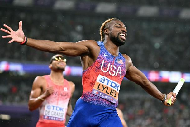 Tokyo (AFP) - Noah Lyles won his second gold of the Tokyo world championships on Sunday after anchoring the USA team to victory in the men’s 4x100 metres relay.