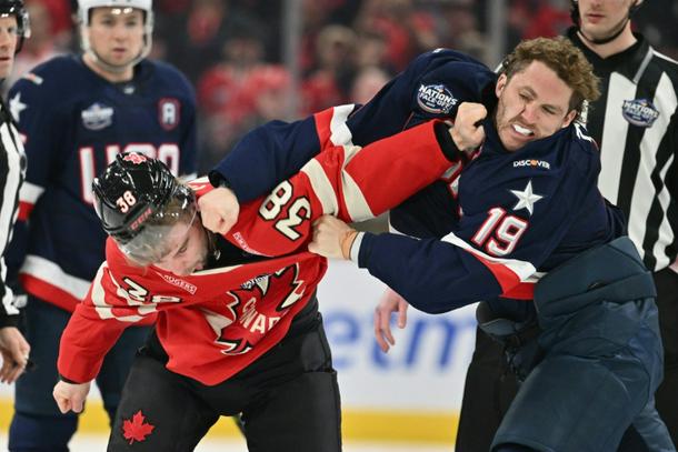 Four Nations Faceoff fights last year like this between the USA's Matthew Tkachuk, right, and Canada's Brandon Hagel could raise the tension level for the Americans at next month's Winter Olympics