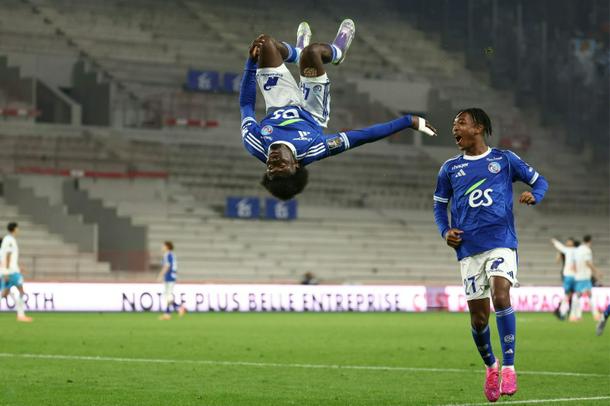 Strasbourg’s Ivorian midfielder Abdoul Ouattara (L) celebrates scoring the opening goal in a 2-1 defeat to Marseille
