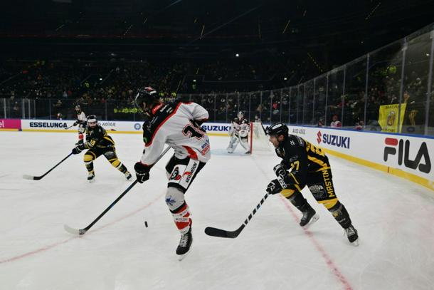 Players take to the rink at the Santa Giulia ice hockey arena set to host matches at the Winter Olympics