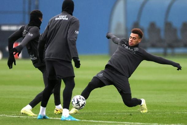 Paris Saint-Germain's injury-hit attacker Desire Doue (R) trained ahead of his side's match with Rennes