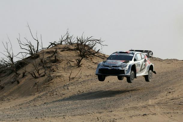 French driver Sebastien Ogier and his co-driver Vincent Landais compete in their Toyota GR Yaris during stage 5 of the FIA World Rally Championship (WRC) in Jeddah