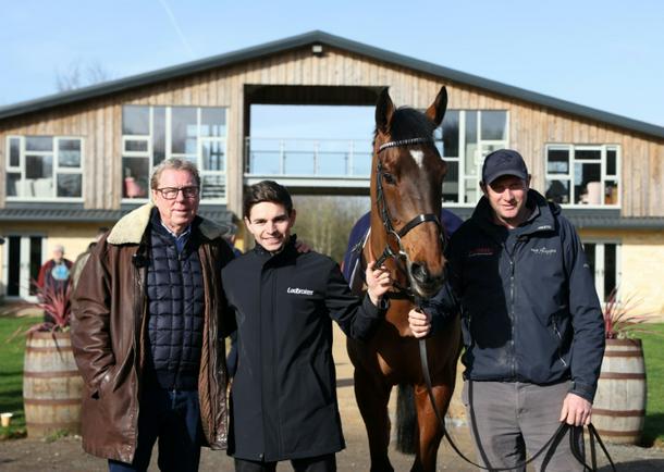 Harry Redknapp, jockey Ben Jones (C) and trainer Ben Pauling (R) hope to deliver a fairytale Cheltenham Gold Cup win with The Jukebox Man