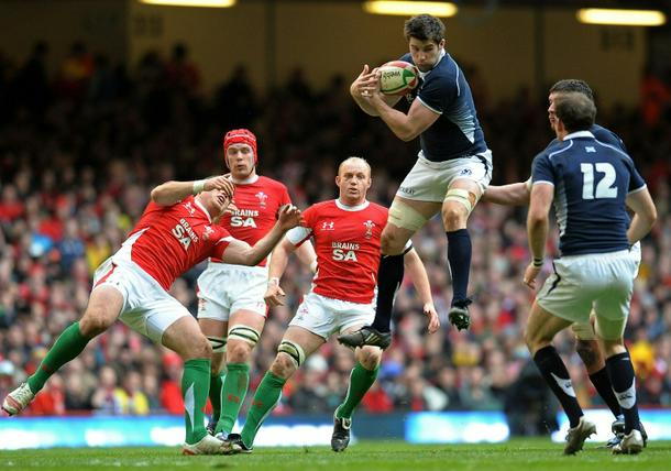 Johnnie Beattie takes the ball during Scotland's Six Nations match against Wales in Cardiff in 2010