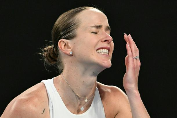 Ukraine's Elina Svitolina reacts after a point in Melbourne