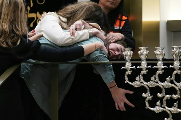 Two young women throw themselves over the coffin of slain rabbi Eli Schlanger, one of 15 victims killed in a mass shooting at Bondi Beach.