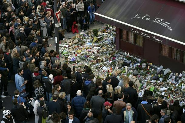 A makeshift memorial outside a restaurant called Le Carillon in the days after the attack