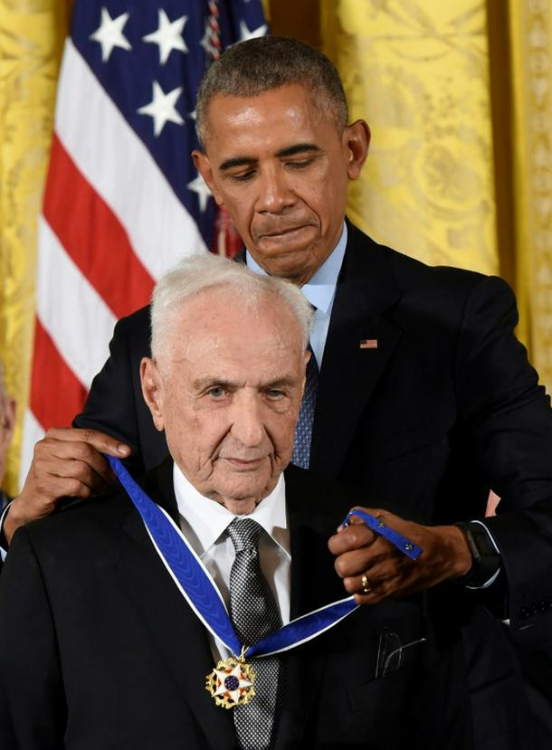 US President Barack Obama presented architect Frank Gehry with the Presidential Medal of Freedom, the nation's highest civilian honor, at the White House in 2016