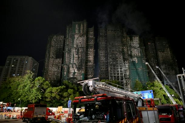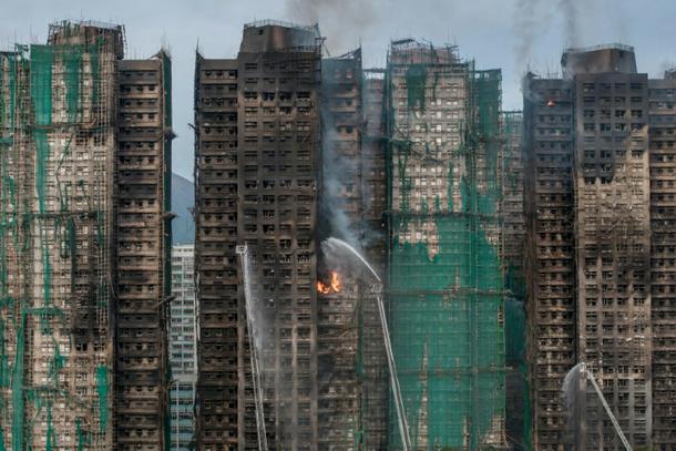 Authorities have begun investigating what sparked the blaze – the financial hub’s worst in almost 80 years – including the presence of bamboo scaffolding and plastic mesh wrapped around the structures as part of a major renovation.