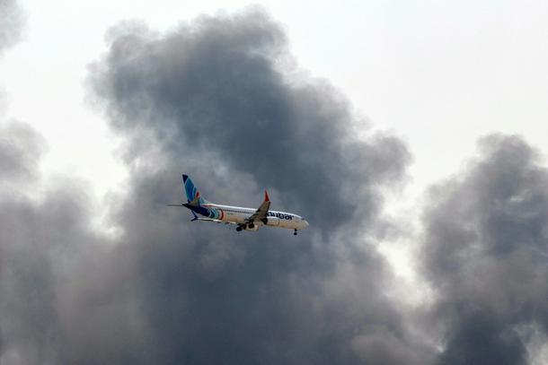 Smoke rises from a fire near Dubai International Airport after a 'drone-related incident'