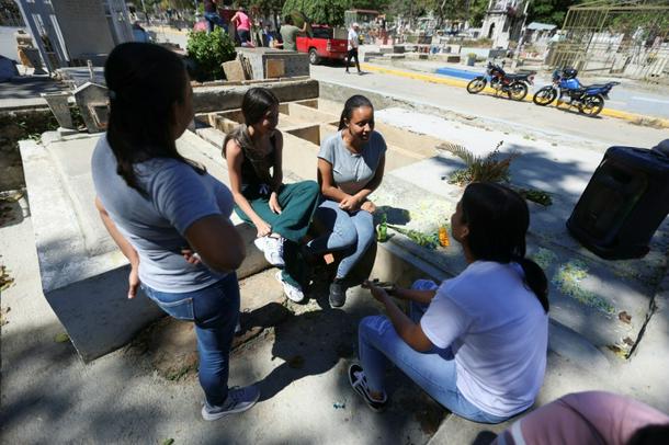 On Sunday, Saul's parents were joined by his girlfriend and friends at the cemetery in southern Caracas
