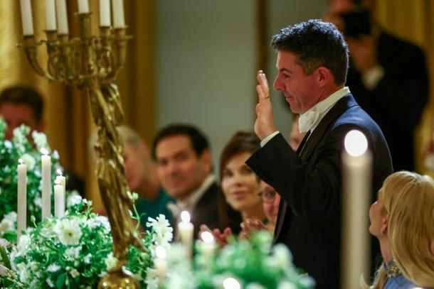The menu for the lavish dinner included a garden vegetable veloute, spring herbed ravioli and Dover sole meuniere, followed by a White House honey and vanilla bean cremeux.