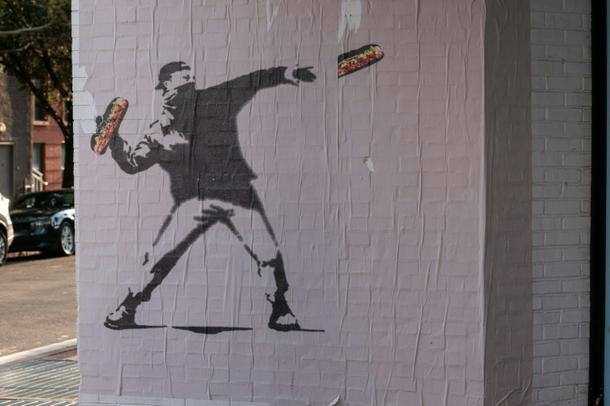 As video of the initial altercation went viral, Dunn was quickly dubbed “DC sandwich guy,” becoming a symbol of resistance to Trump. Stylized images of him in mid-sandwich-attack appeared on posters, graffiti, T-shirts and even a popular Halloween costume.