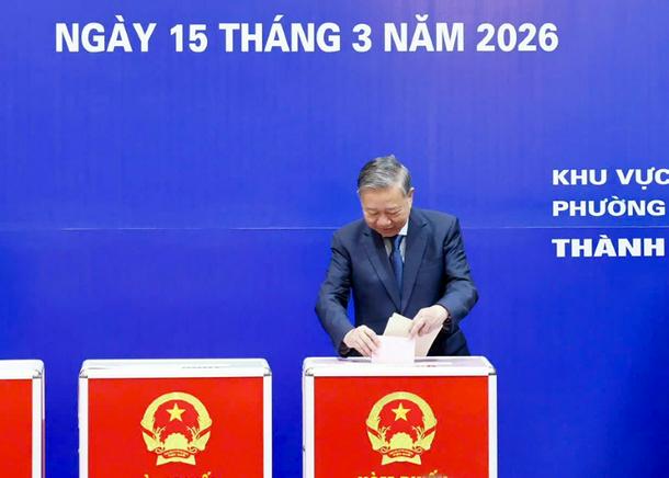 Vietnam's Communist Party Secretary General To Lam casts his ballot at a voting station in Hanoi