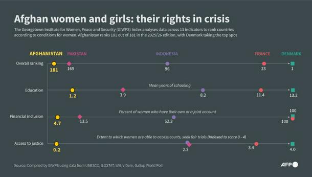 Infographic showing Afghanistan and selected key indicators from the GIWPS Women, Peace and Security Index 2025.