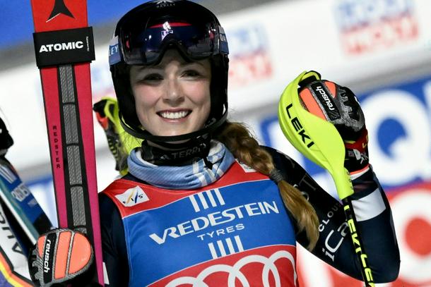 Under floodlights, the American, who won the last race last season and has won every slalom this season, compiled a combined time of 1 minute 42.50 seconds, a colossal 1.55sec ahead of Camille Rast of Switzerland with German Emma Aicher narrowly third.
