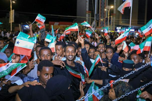 Thousands of people thronged a stadium in the capital Hargeisa, where many dressed in the green, white and red colours of Somaliland’s flag.