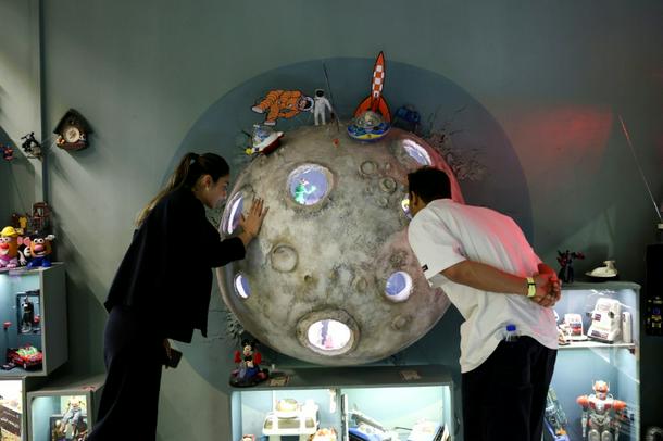 Visitors look at items displayed at a toy museum in the Iranian capital Tehran