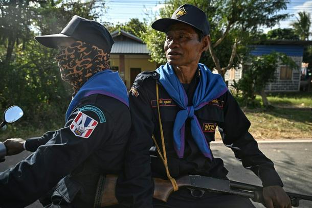 Volunteers in a Thai evacuation zone, where they aim to protect homes and livestock during the conflict