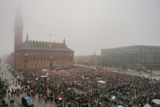The Copenhagen rally, which began at 12:00 pm (1100 GMT), was due to make a stop outside the US embassy in the Danish capital.
